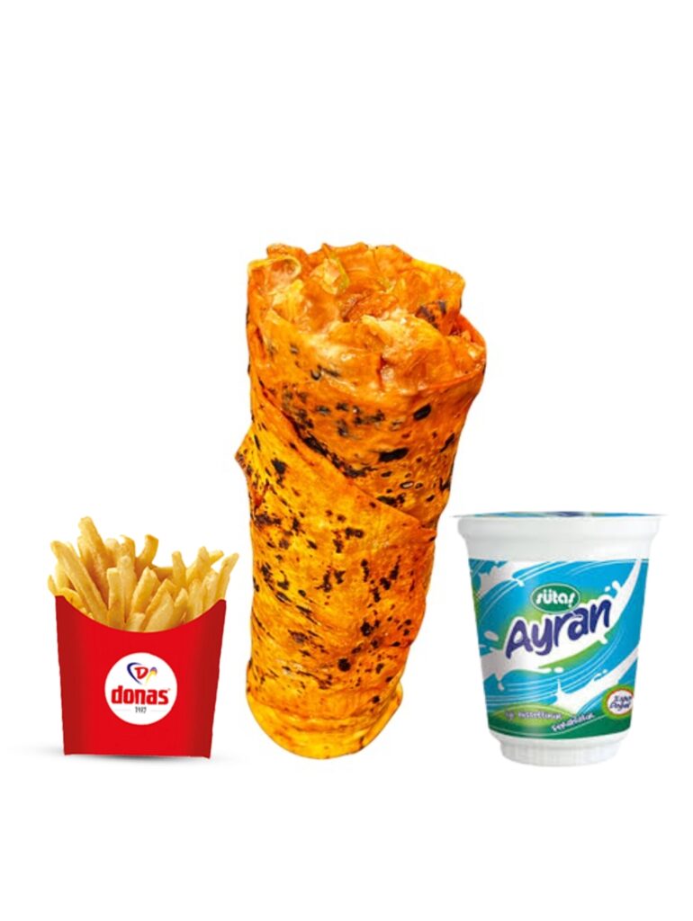 Burrıto tavuk donas cips büyük ayran İçindekiler:Yeşillik salatalık turşusu patates cipsi chedar sos sarımsaklı mayonez Ketcap 200gr tavuk Fiyat:340₺