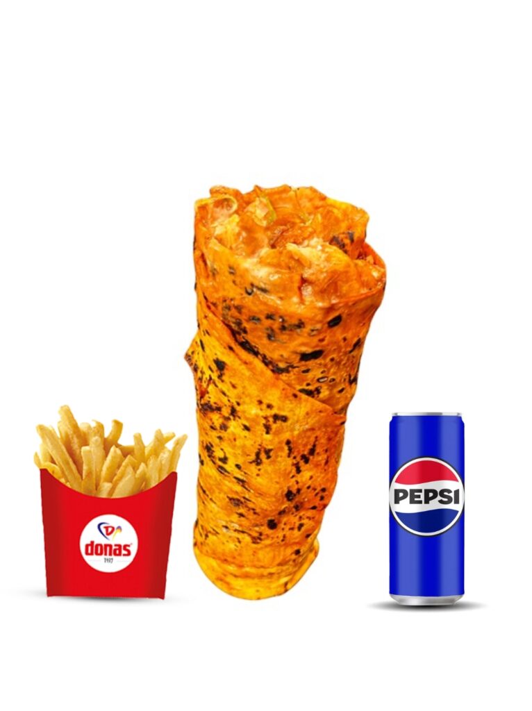Burrıto tavuk donas cips pepsi İçindekiler:Yeşillik salatalık turşusu patates cipsi chedar sos sarımsaklı mayonez Ketcap 200gr tavuk Fiyat:370₺