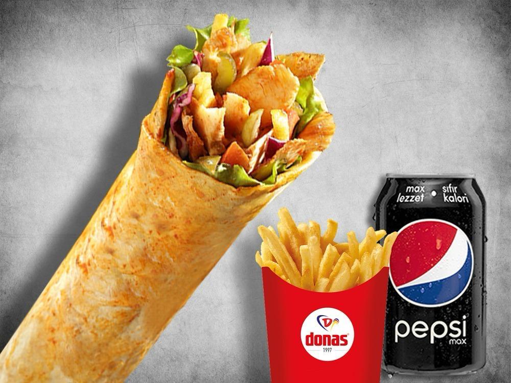 Donas Tavuk Cips ve Pepsi İçindekiler:1 adet tavuk donas, 1 adet Pepsi, 1 adet patates kızartması Fiyat:215